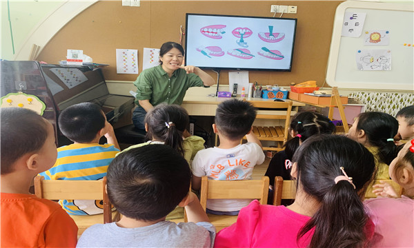 活动中,老师们用图文并茂的形式,让孩子们认识牙齿、了解牙齿、知道牙齿的分类、作用和构造特点,懂得了什么叫龋齿。同时老师还对幼儿日常的刷牙方法进行指导,邀请孩子上台动手实践,纠正他们不良的刷牙习惯,让孩子们懂得要养成早晚刷牙、饭后漱口的好习惯,学会了防止蛀牙的科学知识。