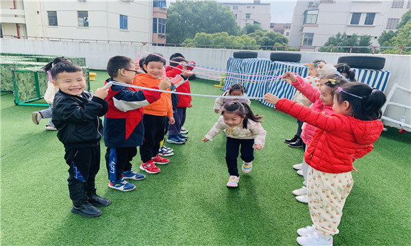 小小的跳绳,不仅发挥了孩子们的想象力和创造力,而且增强了孩子的体质,更重要的是在宽松、自由的游戏氛围中,提高孩子们的创新能力!