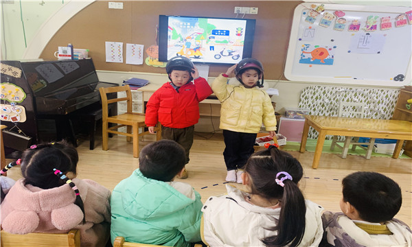 电瓶车作为短途出行的交通工具,方便、节能,深受大家青睐。为提升全体师生及家长的交通安全知识,深入推进“一盔一带”安全行动。2月17日上午,天宁区红梅幼儿园开展了一系列安全教育活动,向幼儿普及了电动车自行车佩戴头盔的安全知识,同时也注重引导幼儿了解佩戴头盔的重要性和必要性。