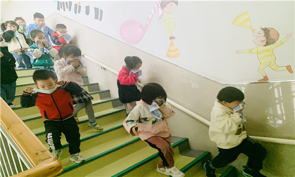 全体教职工和幼儿像往常一样正常开展各种活动。上午9点23分,一阵急促的警报声传遍了整个幼儿园,园长随即发布紧急疏散指令,工作人员各司其职,分工合作,井然有序地开始撤离。各班教师带领幼儿拿起湿毛巾,捂住口鼻,弯腰小步快走,迅速按应急预案中的疏散线路,从室内楼梯和旋转楼梯迅速有序下楼。幼儿园三个消防应急通道全部打开,孩子们顺利地撤离到学校外大操场的安全地带,随后教师迅速清点人数,并向园长报告。