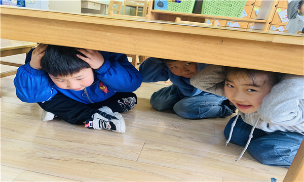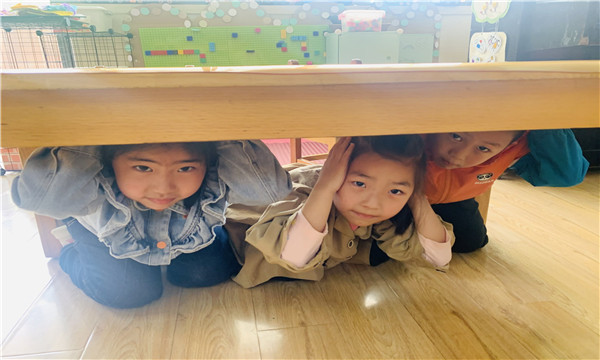 教师根据幼儿的年龄特点,通过丰富多样的形式,对幼儿进行了地震发生时如何自救的安全教育,幼儿通过老师的讲解和示范,了解到了地震发生灾害时自我保护和应急自救的正确方法。知道如果发生地震,室内要躲在坚固结实、不易倾倒、能掩护坚固的物体下或安全三角区进行紧急避险,室外要远离建筑物,到开阔、安全的地方。