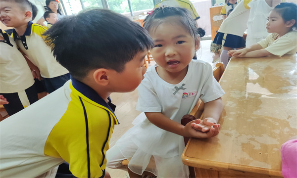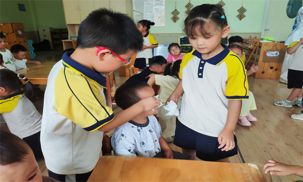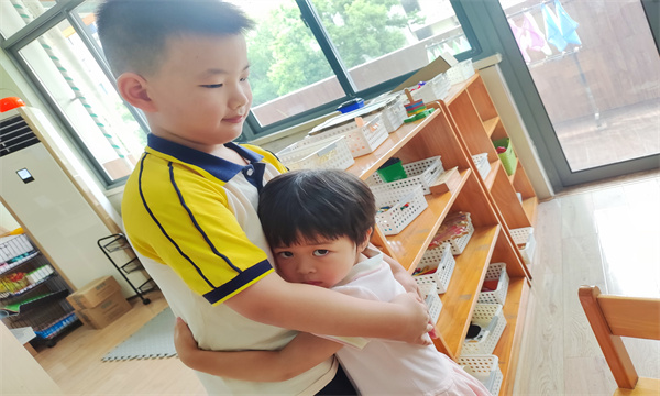 活动过程中,大班孩子们展现出令人惊喜的责任感和同理心。他们轻轻为哭泣的弟弟妹妹擦去眼泪,牵着他们的小手一起玩游戏,还用稚嫩却真诚的话语鼓励他们:“别怕,幼儿园可好玩啦!”许多原本情绪低落的小班幼儿逐渐放松下来,开始愿意参与活动,教室里洋溢着温馨与信任的氛围。