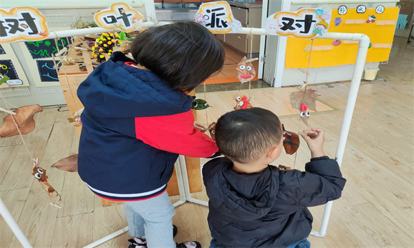 将秋天的印象带回教室,创意活动如火如荼。植物角里,孩子们水培胡萝卜,观察生命成长;美工区内,孩子们化身“小小艺术家”,将收集来的片片落叶精心打扮。他们用灵巧的小手将彩色黏土捏成小巧的眼睛、鼻子和嘴巴,轻轻点缀在叶面上,转眼间,一片片普通的叶子变成了一个个生动可爱的“树叶小精灵”,创意十足,童趣盎然。