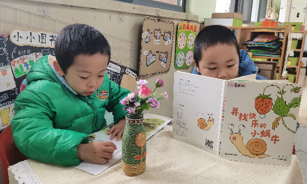 音乐区里,孩子们手持铃鼓、木鱼等乐器,跟着节奏放声歌唱,在打击乐演奏中感受韵律美,锻炼音乐感知力;建构区的“小小建筑师”们用积木、纸杯合作搭建造型,在动手操作中探索空间结构,培养协作与探究能力;阅读区中,孩子们翻阅《寻找快乐的小蜗牛》等绘本,在沉浸式阅读中激发语言表达与想象力。