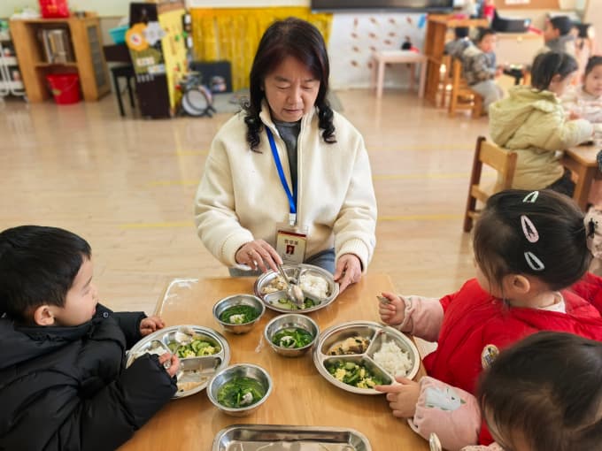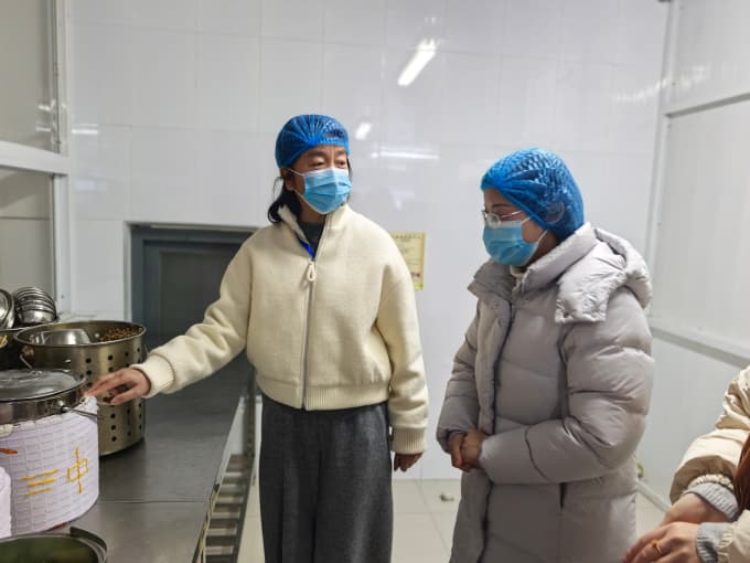 12月26日上午,责任督学朱薇园长莅临天宁区红梅幼儿园,在夏丽华园长的陪同下开展了12月常规督导工作。朱园长首先深入幼儿园食堂,对厨房卫生状况、人员操作流程、食品留样等环节进行了细致检查,并重点查看了冬季饭菜保温措施,确保幼儿饮食安全与健康。随后,她走进各班观摩幼儿活动,与孩子们共同用餐,亲切交流,耐心鼓励大家践行“光盘行动”,现场氛围温馨融洽。