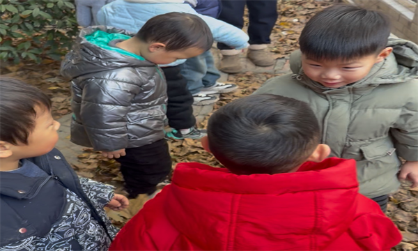 随后,孩子们走进铺满落叶的小径。脚下传来“沙沙、咔嚓”的清脆声响,像一首自然的交响乐。他们开心地踩着、跳着,专注地聆听着每片树叶发出的不同声音,感受着季节更迭带来的奇妙礼物。